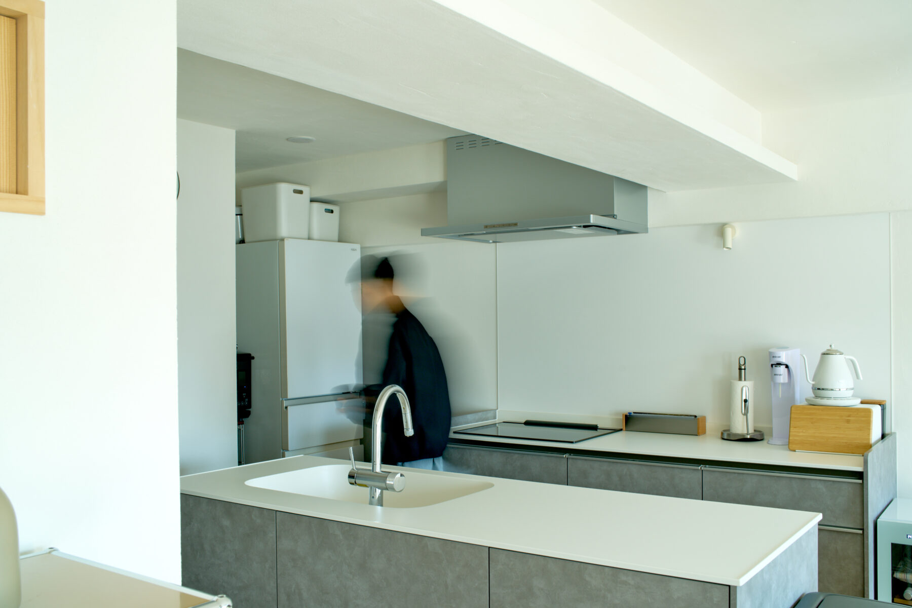 Mさん:一番は、キッチンのお茶をいれる空間です。コーヒーやお茶をいれるのが好きなので、そのスペースをしっかりとって、動きやすい動線にしたいという思いがありました。結果、アイランドキッチンからそのままリビングにぬけられるような設計になりました。